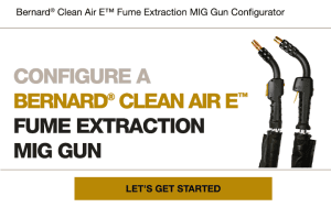 Bernard® Clean Air E™ fume extraction MIG guns captures welding fumes at the source, helping users maintain a compliant and a cleaner welding environment. Built with a robust, ergonomic design, these guns support extended use while minimizing operator fatigue and reducing downtime.