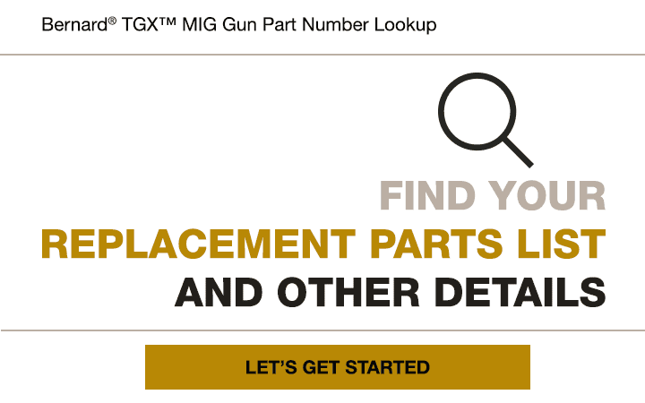 Bernard® TGX™ semi-automatic air-cooled MIG guns are perfect for low volume, light- to medium-duty welding and a durable, attractively priced choice. TGX MIG guns are ideally suited for lower amperage welding applications and shorter arc-on times.